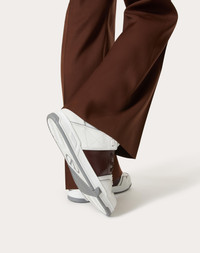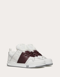 Valentino Garavani Open Skate Sneaker in Calfskin and Fabric - Padded fabric tongue with VLogo Signature rubber detail - Contrasting colored band - Maxi side stud detail - Rubber tread with VLogo Signature detail - Made in Italy Product Code YS0F89YPB_6TU