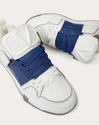 Valentino Garavani Open Skate Sneaker in Calfskin and Fabric - Padded fabric tongue with VLogo Signature rubber detail - Contrasting colored band - Maxi side stud detail - Rubber tread with VLogo Signature detail - Made in Italy Product Code YS0F89YPB_6TT
