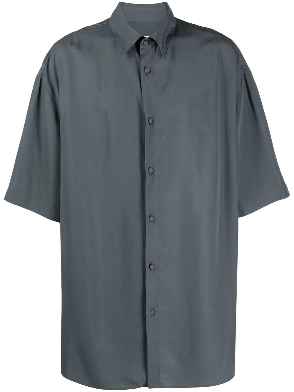 oversized shirt Ever heard the expression 'go big or go home'? It perfectly applies to this dark grey oversized shirt from Valentino. Bigger is better when it comes to Valentino. Featuring a classic collar, dropped shoulders, a front button fastening, half sleeves and an oversized fit. POSITIVELY CONSCIOUS: At least 50% of the main material of this product meets our conscious criteria: for example, it's either organic, recycled, upcycled, or independently recognised as being better for the environment (such as linen, ramie, Tencel, etc.). Made in Italy Composition Lyocell 100% SIZE & FIT Model measurements Height 6 ft 2 in(1.88 m) Bust/Chest 36.61 in(93 cm) Hips 35.82 in(91 cm) Waist 27.95 in(71 cm) FittingInformation This piece fits true to size. We recommend you get your regular size Cut for a loose fit Made with a mid-weight non-stretch fabric Washing instructions Read Manufacturer Guidelines