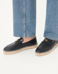 Valentino Garavani Palm Avenue calfskin loafer - VLogo Signature accessory in antique brass-effect finish - Cord base and rubber sole - Heel height 20 mm / 0.8 in. - Made in Spain Product code: 6Y2S0K00UDX_0NO