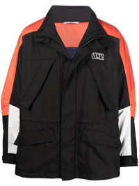 panelled sports jacket Valentino Garavani's panelled sports jacket combines bold design with technical construction. Featuring a concealed front zip fastening, this outerwear choice is decorated with a VLTN logo patch towards the front. Highlights - Valentino ready to wear - Multicolour - High neck - Concealed front zip fastening - Logo patch to the front - Front pockets - Long sleeves Made in Italy Composition Outer: Polyester 100%, Polyamide 100% Lining: Polyamide 100%, Polyester 100% SIZE & FIT Model measurements Height 6 ft 1 in(1.86 m) Bust/Chest 35.43 in(90 cm) Hips 35.43 in(90 cm) Waist 29.92 in(76 cm) FittingInformation This piece fits true to size. We recommend you get your regular size Cut for a loose fit Made with a mid-weight non-stretch fabric