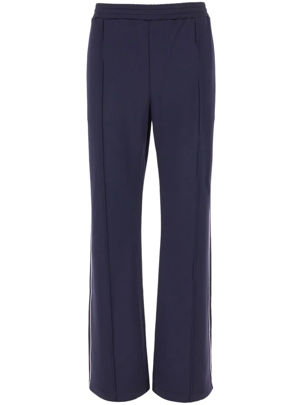 VGold track pants Highlights - Valentino ready to wear - Navy blue - Technical jersey - Vgold detail - Raised seam detail - Elasticated waistband with internal drawstring - Two side inset pockets - Rear patch pocket - Straight leg Made in Italy Composition Nylon 56%, Cotton 44%