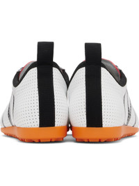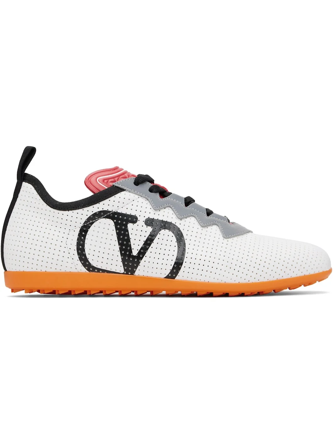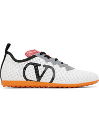 Low-top buffed leather sneakers. · Perforations throughout · Square toe · Reflective trim at vamp · Lace-up closure · Logo pattern embossed at padded tongue · Padded collar · Logo printed at outer side · Pull-loop at heel collar · Mesh lining · Treaded rubber sole Supplier color: Bnc/Grg/Nr/Pmkn Upper: leather. Sole: rubber. Made in Italy 252807M237009