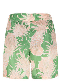 pineapple-print swim shorts Valentino Garavani takes classic silhouettes and updates them with refreshing details. A fine example, these swim shorts are decorated with a peach-pink pineapple print against the striking green background for a bold finish. Highlights - Valentino ready to wear - Grass green/peach pink - All-over graphic print - Elasticated waistband - Logo print to the front - Rear jetted pocket - Straight hem - Be mindful to try on swimwear over your own garments. - The full look includes valentino garavani accessories. Made in Italy Composition Outer: Polyamide 100% Lining: Polyamide 100% Washing instructions Machine Wash
