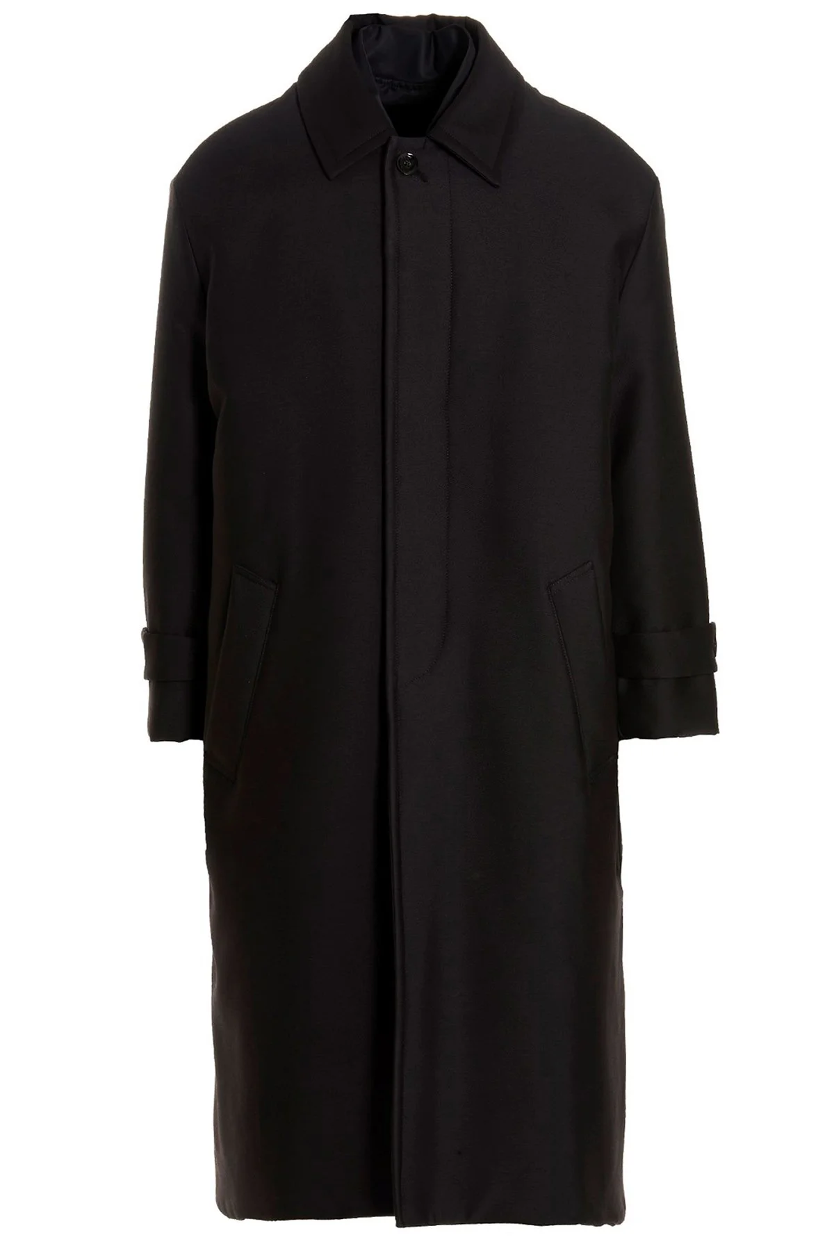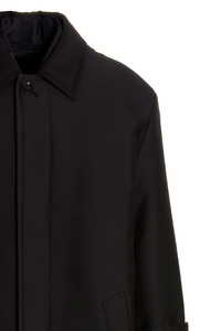 cod. 1V0CAG008E90NO Valentino Pink PP Collection reversible long cotton, wool and silk coat with non-removable inner bomber jacket. Shirt-style coat with concealed button closure, two side pockets, lined and slightly padded style, nd an all-over jacquard V jacquard lining. Zip bomber jacket with zip closure, two side pockets, lined and slightly padded style.ly padded. Color: Black Size & Fit: True to size fit Made in: Italy