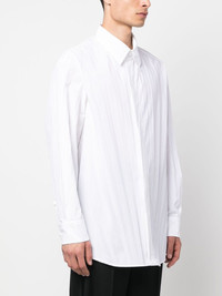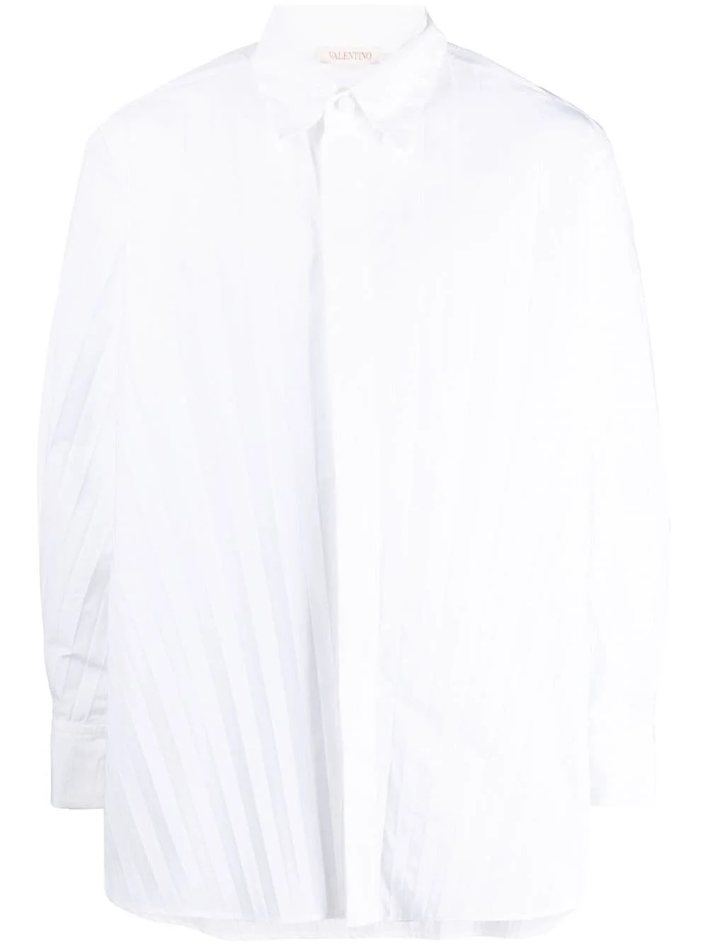 pleated long-sleeve shirt Defined by 'an aesthetic, contemporary vision and the excellence in the execution', Valentino Garavani embodies timeless elegance with a modern twist. Cut to a loose fit, the shirt is crafted from a lustrous fabric and delicately pleated throughout, lending an elevated appearance. Highlights - Valentino ready to wear - White - Cotton blend - Fully pleated - Straight-point collar - Concealed front button fastening - Long sleeves - Buttoned cuffs - Rear curved hem Made in Italy Composition Cotton 59%, Polyamide 41% SIZE & FIT Model measurements Height 6 ft 1 in(1.85 m) Bust/Chest 35.82 in(91 cm) Hips 37.79 in(96 cm) Waist 29.13 in(74 cm) FittingInformation Designed to be unstructured, offering a loose fit throughout Made from a midweight non-stretch fabric This piece fits true to size – take your usual size Washing instructions Dry Clean Only
