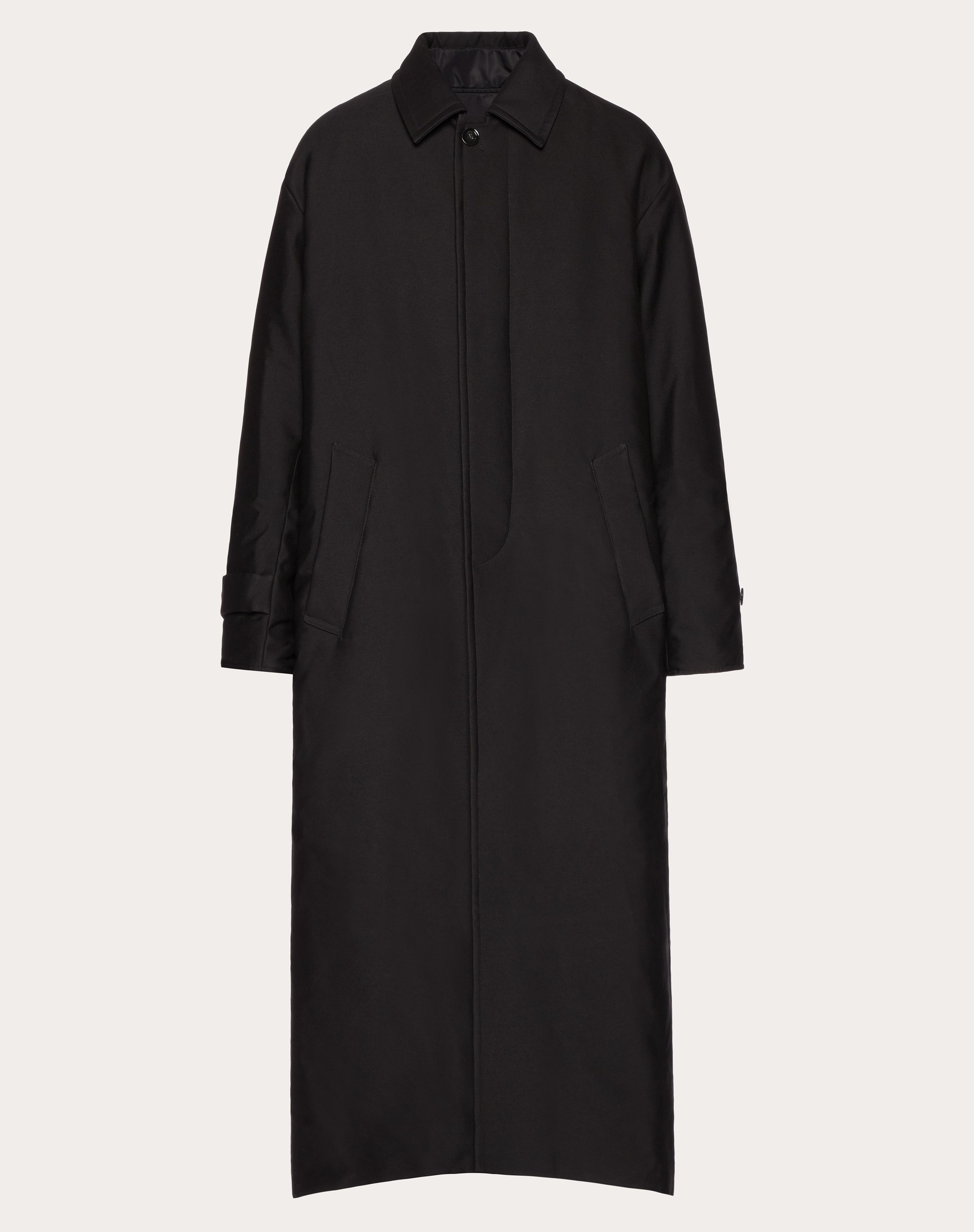 Reversible coat in cotton, wool and silk blend with non-removable inner bomber layer. COAT SIDE - Shirt-style collar - Concealed button closure - Two side pockets - Lined and lightly padded - All-over VLogo jacquard lining - Composition: 40% Cotton, 40% Wool, 20% Silk - Lining: 46% Cupro, 46% Polyester, 8% Polypropylene - Padding: 100% Polyester - Length: 130 cm / 51.1 in. from the back of the neck in Italian size 46 BOMBER SIDE - Zipper closure - Two side pockets - Lined and lightly padded - Composition: 100% Polyamide - Lining: 100% Polyester - Padding: 100% Polyester - Length: 69 cm / 27.1 in. from the back of the neck in an Italian size 46 - The model is 187 cm / 6'1" tall and wears an Italian size 46 - Made in Italy Product code: VCAG008E9_0NO
