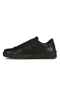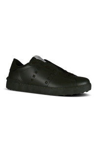 Valentino Rockstud 11 Untitled sneakers in khaki green leather. Platinum finish decorative studs. Rubber sole with decorative rubber studs on the back. Made in Italy.