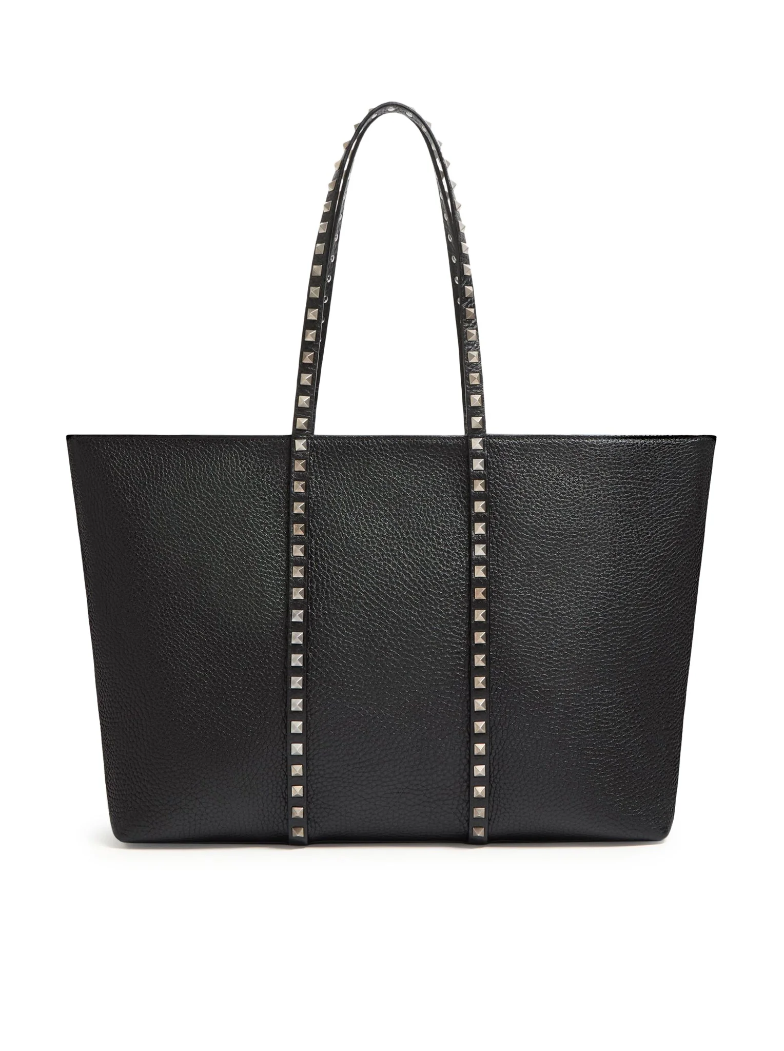 - Rockstud bag in hammered calfskin - Can be used as a shoulder tote - Studs and metal accessories with palladium finish - Zip closure - One zipped slip pocket - One open slip pocket - Dimensions: W37 x H27 x D12 cm - Handle height: 20.5 cm Made in Italy Composition: Calf Leather 100% Calf leather Color code: 0NO BLACK 7Y2B0R04KDB