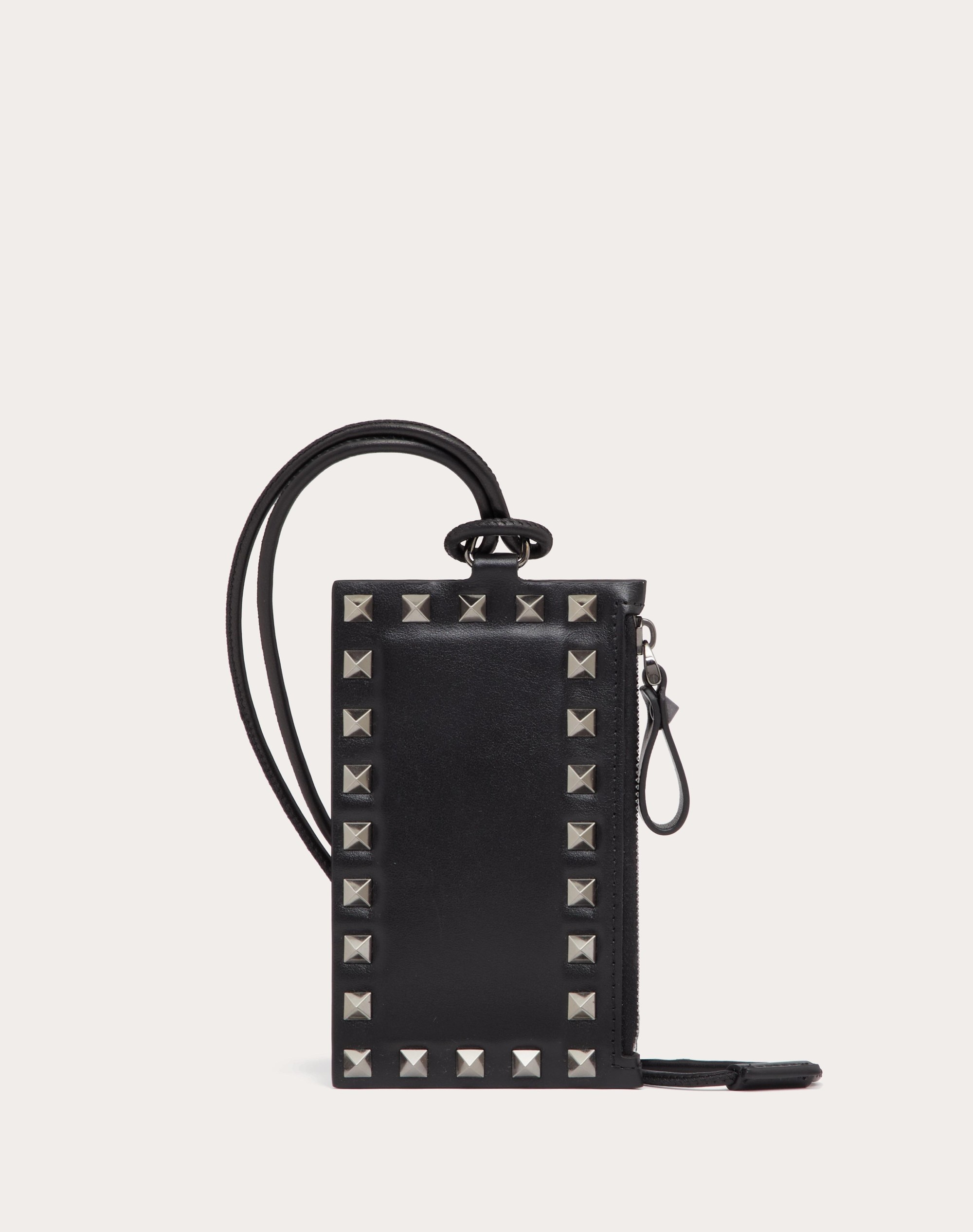 Valentino Garavani Rockstud card holder with neck strap in calfskin - Side trim decorated with ruthenium studs - Ruthenium-finish hardware - Four card slots - Zipper coin pocket - Non-removable neck strap - Strap drop length: 32 cm / 12.6 in. - Valentino Garavani logo - Dimensions: W14xH9xD1 cm / W5.5xH3.5xD0.3 in. - Made in Italy Product code: 4Y2P0U63ACV_0NO Valentino Garavani Rockstud card holder with neck strap in calfskin - Side trim decorated with ruthenium studs - Ruthenium-finish hardware - Four card slots - Zipper coin pocket - Non-removable neck strap - Strap drop length: 32 cm / 12.6 in. - Valentino Garavani logo - Dimensions: W14xH9xD1 cm / W5.5xH3.5xD0.3 in. - Made in Italy Product code: 4Y2P0U63ACV_0NO