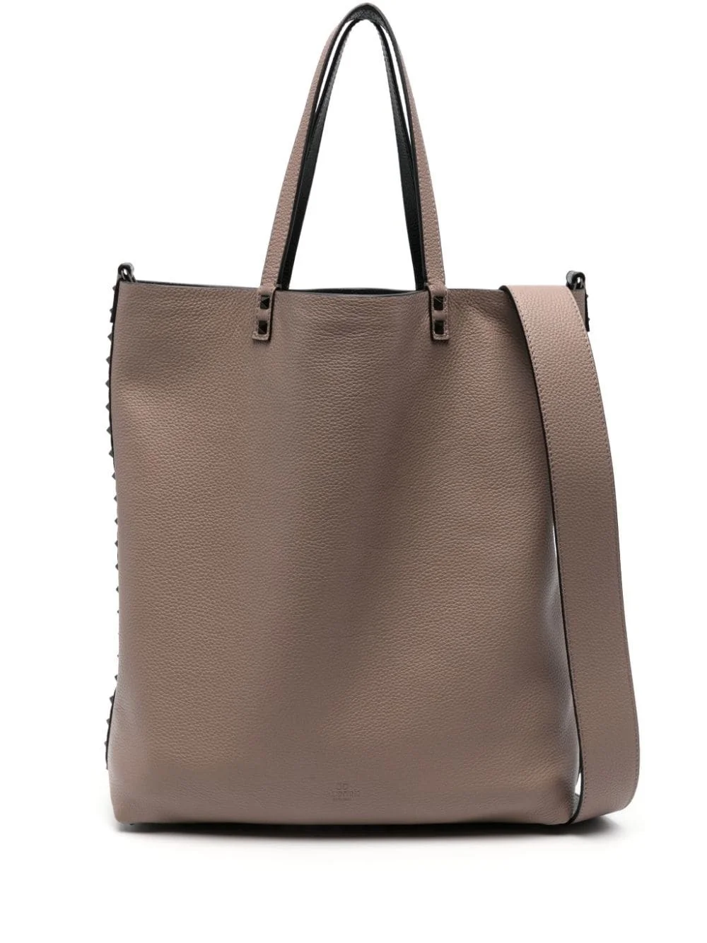 Rockstud-embellished reversible tote bag Highlights - Taupe brown - Calf leather - Pebbled texture - Signature rockstud embellishment - Reversible - Two flat top handles - Detachable shoulder strap - Main compartment - Contrast lining - Gunmetal-tone hardware - Open top - This piece comes complete with a protective dust bag. Made in Italy Composition Outer: Calf Leather 100% SIZE & FIT Model measurements Height 6 ft 1 in(1.85 m) Bust/Chest 35.82 in(91 cm) Hips 37.79 in(96 cm) Waist 29.13 in(74 cm) Measurement DEPTH 3.93 in(10 cm) HANDLE 7.08 in(18 cm) HEIGHT 13.77 in(35 cm) STRAP 44.09 in(112 cm) WIDTH 11.81 in(30 cm)