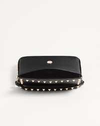 Valentino Garavani Rockstud pouch in grainy calfskin leather. - Platinum-finish metal studs and hardware - Magnetic button fastening - Removable strap - Open slip pocket and three card slots - Dimensions: W19xH12xD3 cm / W7.5xH4.7xD1.6 in. - Drop length: 51 cm / 20.1 in. - Made in Italy This product contains magnets. Please consider if this product will be worn within 15 cm from any implanted device. Any concerns please contact your healthcare professional. Product code: 7W2P0W07VSH_0NO