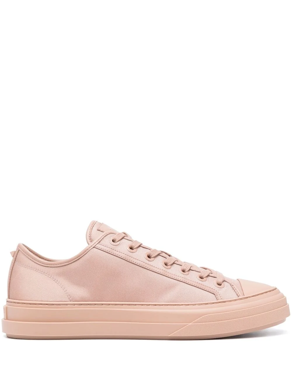 logo-patch lace-up sneakers Effortlessly tying in with current branding trends, this pair of lace-up sneakers from Valentino Garavani feature a logo patch at the tongue of the design. In a monochromatic hue, the shoes also have a timelessness. Highlights - Pink - Logo patch at the tongue - Front lace-up fastening - Round toe - Flat rubber sole Made in Italy Composition Outer: Polyurethane 100%, Fabric 100% Lining: Fabric 100% Sole: Rubber 100% SIZE & FIT Measurement HEEL 1.57 in(4 cm) Sole height 1.18 in(3 cm)