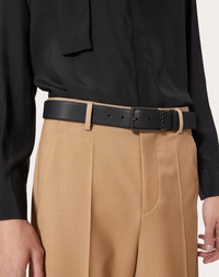 Valentino Garavani Rockstud reversible belt in grainy calfskin. - Reversible buckle with ruthenium finish and stud detailing - Grainy calfskin exterior - Grainy calfskin interior - Valentino Garavani logo - Dimensions: H 35 mm / 1.4 in. - Made in Italy Product code: 4Y2T0SC3BVR_59S