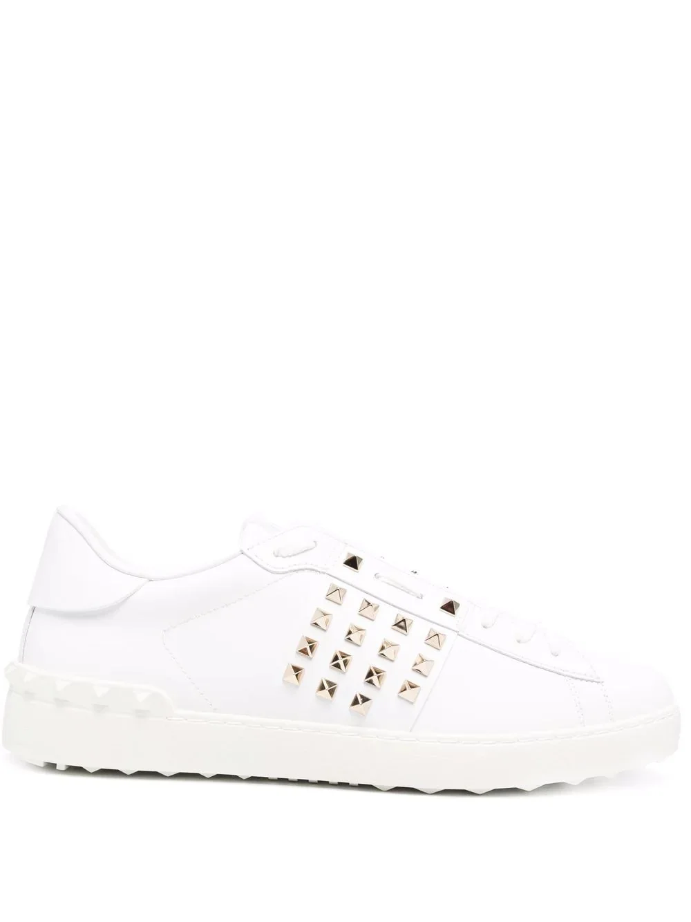 Rockstud Untitled slip-on sneakers Valentino Garavani's Untitled sneakers are known for their minimalistic silhouette and slip-on design. For AW21, the house presents a new iteration of this versatile shoe by adding its signature Rockstud embellishments to the upper. Crafted from soft leather, they're finished with a logo at the tongue and sit atop a flat rubber sole. Made in Italy Composition Outer: Leather 100% Lining: Leather 100% Sole: Rubber 100% SIZE & FIT Measurement HEEL 1.57 in(4 cm) Sole height 0.98 in(2.5 cm)