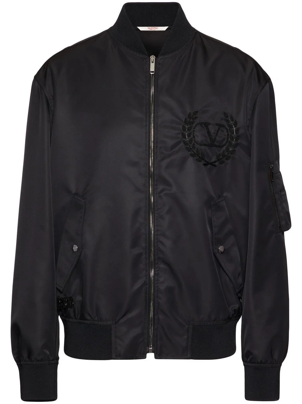 sequin-embellished zip-up bomber jacket Highlights - Valentino ready to wear - Black - Sequin embellishment - Band collar - Front zip fastening - Long sleeves - Fitted-cuff sleeves - Two front flap pockets - Straight hem - The full look includes valentino garavani accessories. Made in Italy Composition Outer: Polyamide 100%, Polyester 100%, Metallic Fibre 35%, Nylon 35%, Cotton 30% Lining: Polyester 100%