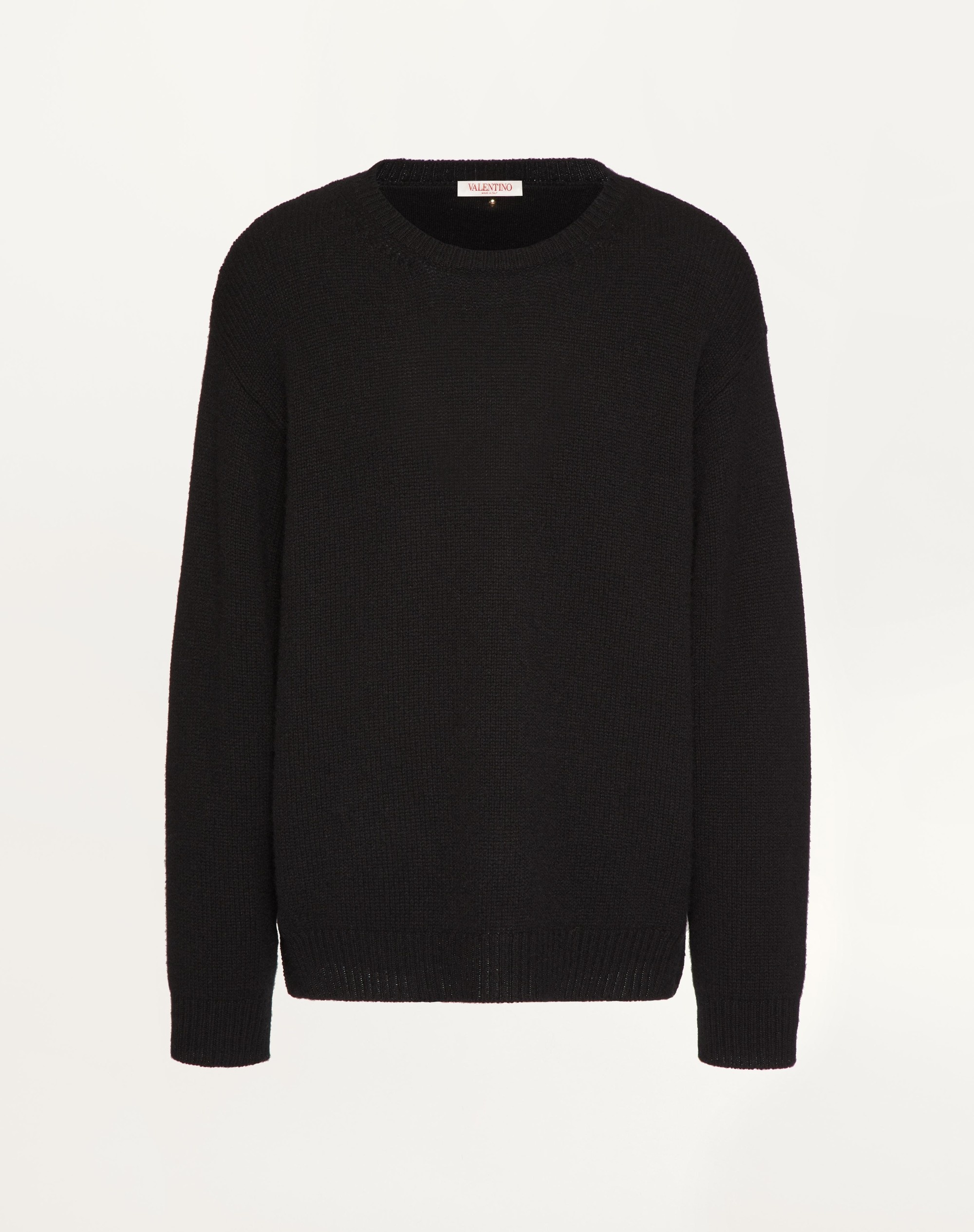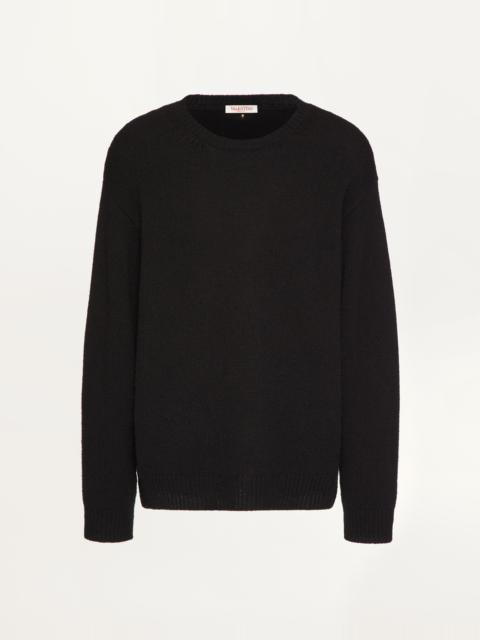 Valentino Cashmere crewneck sweater with stud - Oversized fit - Gauge: 7 - One stud on back collar band - Composition: 100% Cashmere - Length: 70 cm / 27.6 in. from the back of the neck in size M - The model is 187 cm / 6'1" tall and wears a size M - Made in Italy The look of the model is completed by Valentino Garavani VLogo Pace Shoes. Product code: 3V3KC26X9JP_0NO