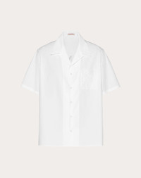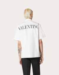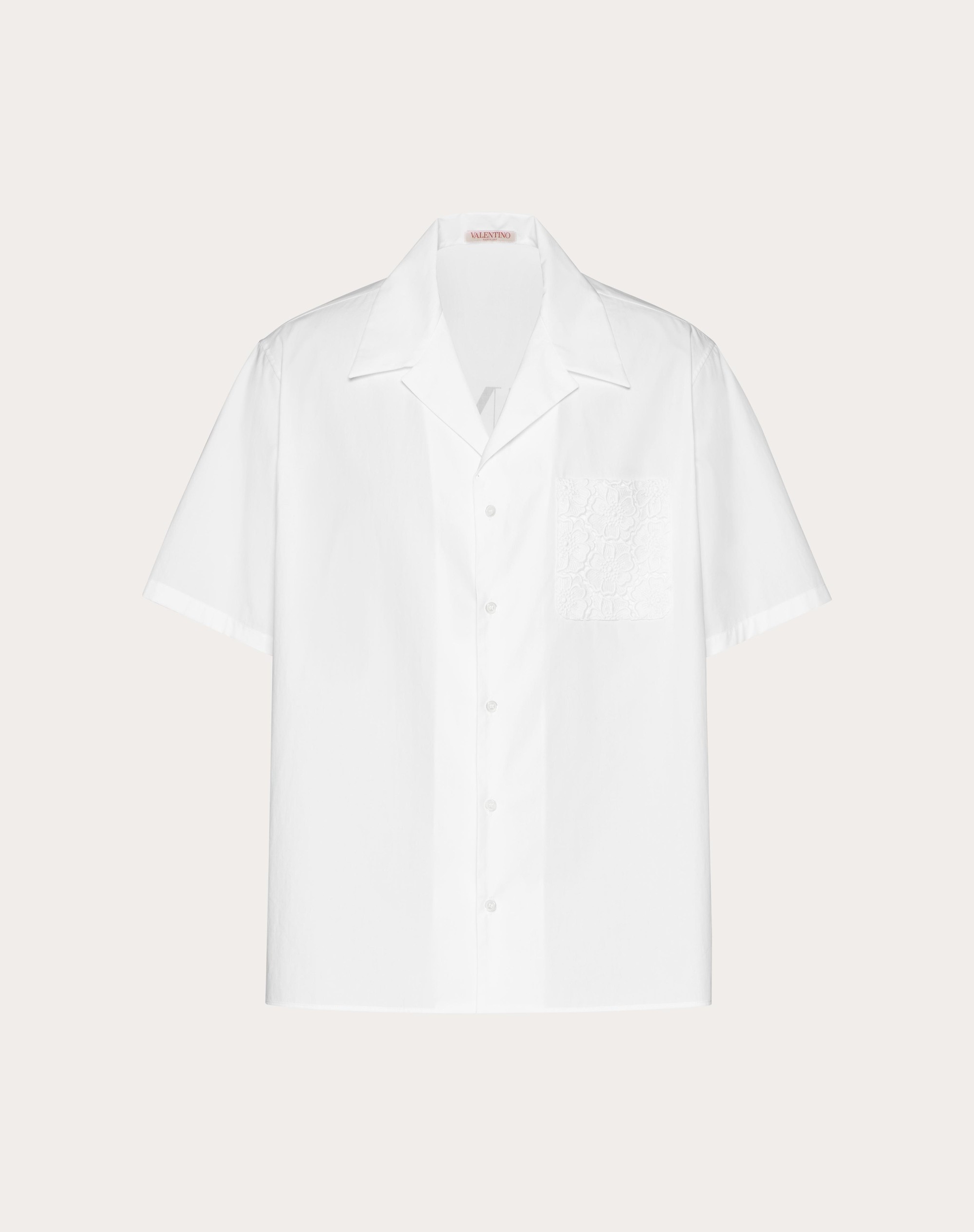 Short-sleeve shirt in cotton with macramé pocket and Valentino print at back. - Semi-oversize fit - Button fastening - Macramé pocket - Composition: 100% Cotton - Length: 76 cm / 30 in. from the back of the neckline in Italian size 46 - The model is 187 cm / 6’1” tall and wears an Italian size 46 - Made in Italy Product Code VAAA9082K_A01