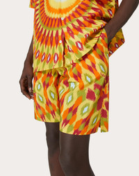 SILK AND COTTON BERMUDA SHORTS WITH ROUND RAIN PRINT