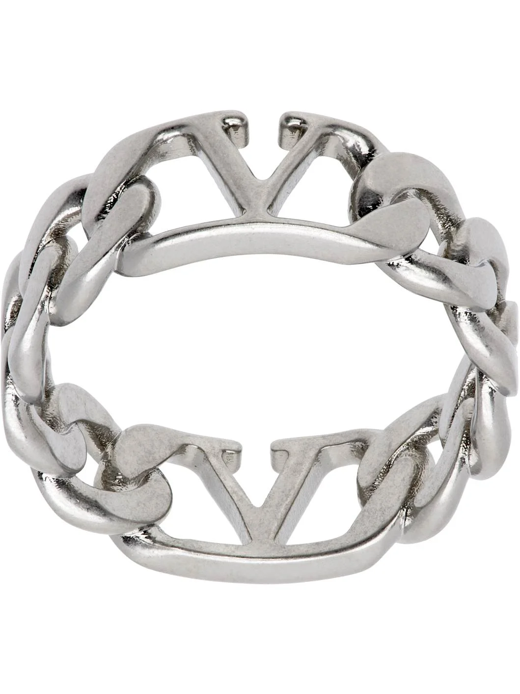 Fixed curb chain band ring in silver tone. Logo cutout at face and back face. Supplier color: Palladium Metal. Made in Italy 251807M147002