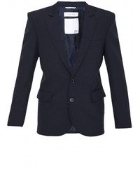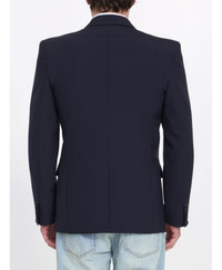 Blue wool blend jacket. It features peaked lapels, single-breasted closure, two front flap pockets, a welt pocket on chest and buttoned cuffs with studs. 29 label sewn inside. Regular fit. The model is 184cm tall and wears size IT 48. Additional Info Designer code: 4V3CEF618EJ598 Composition: 63% wool, 37% viscose Made in: Italy