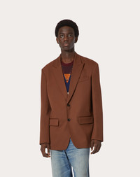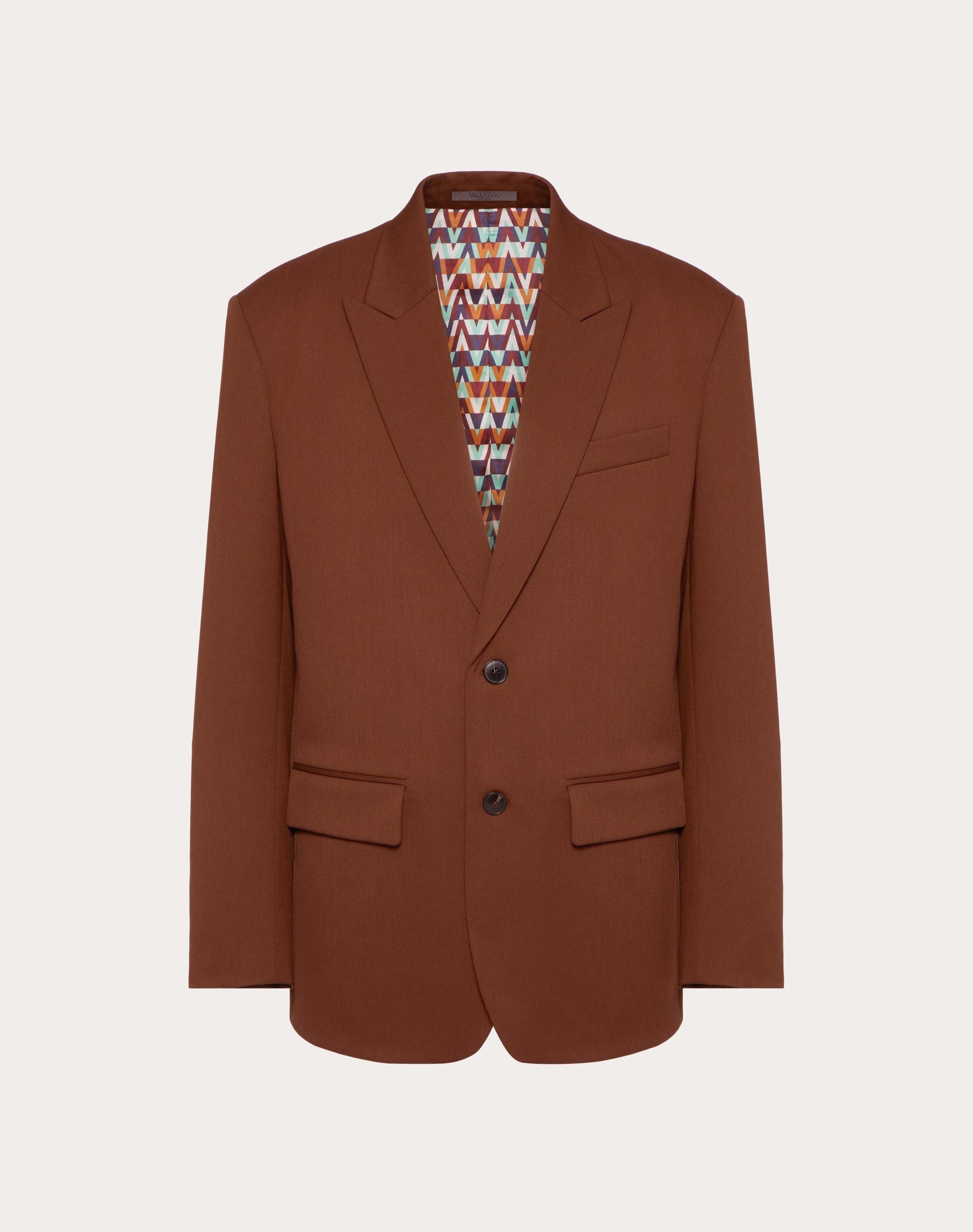 Single-breasted jacket in wool with all-over Optical Valentino print lining. - Regular fit - Pointed collar - 2 buttons - 2 side pockets and one chest pocket at left as worn - Composition: 98% Virgin Wool, 2% Elastane - Length: 78.5 cm / 30.9 in. from the back of the neckline in Italian size 46 - The model is 187 cm / 6’2” tall and is wearing an Italian size 46 - Made in Italy Product Code VCED30804_K29