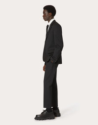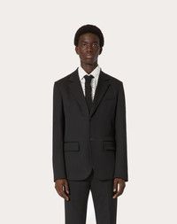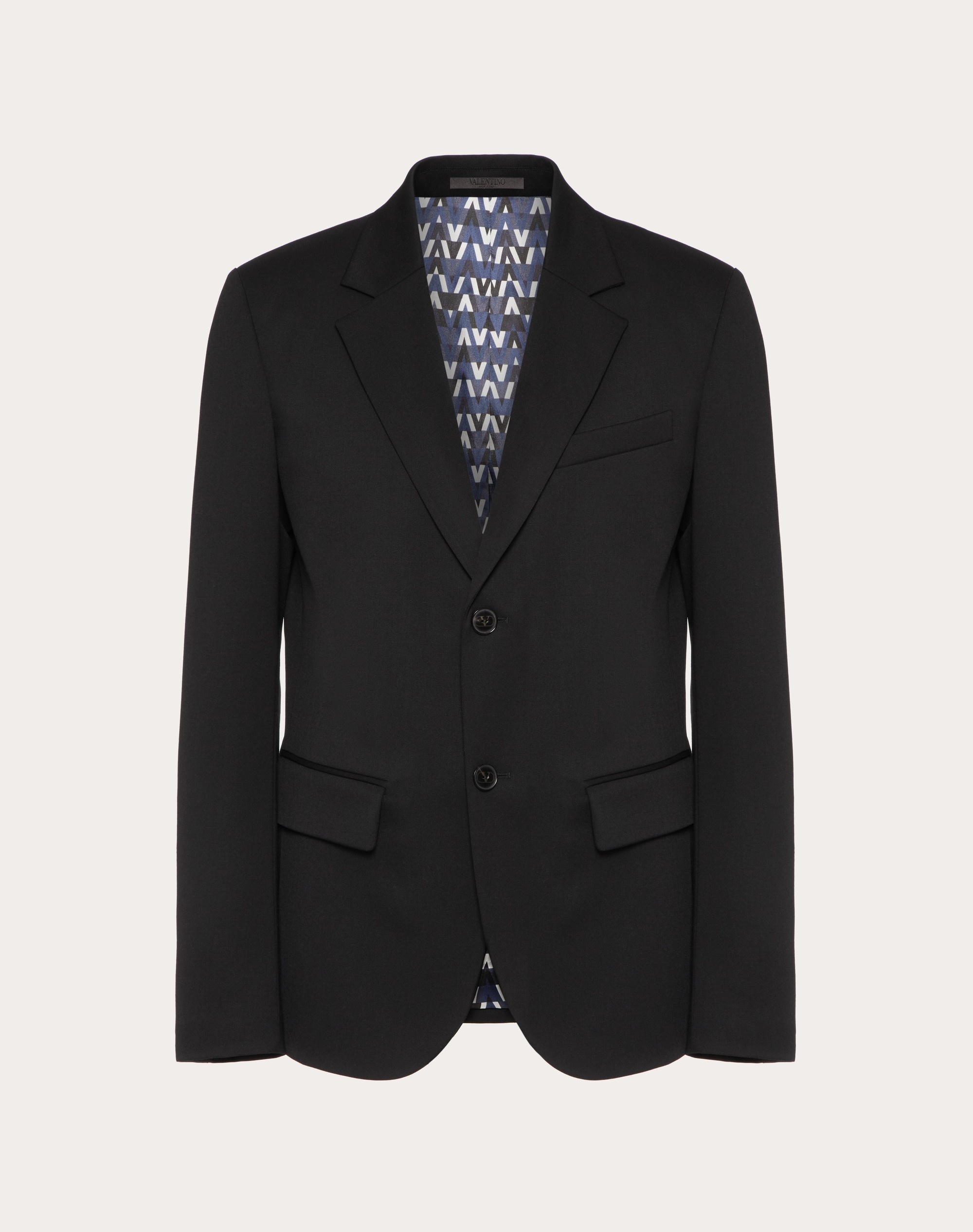 Single-breasted jacket in wool with all-over Optical Valentino print lining. - Slim fit - Notch collar - 2 buttons - 2 side pockets and one chest pocket at left as worn - Composition: 98% Virgin Wool, 2% Elastane - Length: 73 cm / 28.7 in. from the back of the neckline in Italian size 46 - The model is 187 cm / 6’2” tall and is wearing an Italian size 46 - Made in Italy Product Code VCED40804_0NO