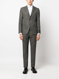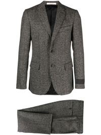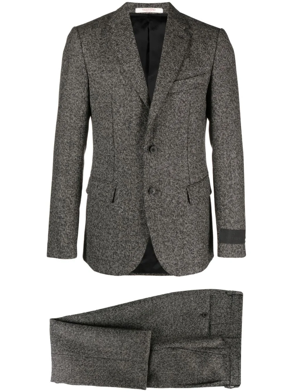 single-breasted tweed suit Woven from wool tweed, this two-piece suit from Valentino Garavani is emblematic of the Italian house's tailoring know-how. It's designed for a slim fit and comprises a single-breasted blazer with notched lapels and trousers with a sleek concealed fastening. Highlights - Valentino garavani ready to wear - Black/white - Wool - Tweed - Tailored design - Jacket: - Notched lapels - Chest welt pocket - Two side flap pockets - Buttoned cuffs - Logo patch at the sleeve - Trousers: - Mid-rise - Two diagonal pockets to the sides - Two rear welt pockets - Slim cut Made in Italy Composition Outer: Wool 100% Lining: Cupro 100%, Polyamide 57%, Cotton 43% SIZE & FIT Model measurements Height 6 ft 2 in(1.87 m) Bust/Chest 36.41 in(92.5 cm) Hips 35.43 in(90 cm) Waist 29.52 in(75 cm) FittingInformation Tailored for a slim fit, this waistcoat sits just away from the body The vented hem offers movement at the rear Made from a midweight non-stretch fabric This piece fits true to size – take your usual size Washing instructions Dry Clean Only