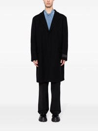 single-breasted wool-blend coat Valentino Garavani appreciates minimalism in this virgin wool-blend coat, evident in its classic black tone and concealed front fastening. A tonal black logo patch decorates the cuff for a branded completion. Highlights - Black - Virgin wool blend - Notched lapels - Concealed front fastening - Front flap pockets - Long sleeves - Logo patch at the sleeve - Straight hem Made in Italy Composition Virgin Wool 73%, Polyamide 27% SIZE & FIT Model measurements Height 6 ft 2 in(1.89 m) Bust/Chest 37.4 in(95 cm) Hips 36.61 in(93 cm) Waist 28.34 in(72 cm) FittingInformation Designed to be unstructured, offering a loose fit throughout The narrow-cut sleeves offer a close fit at the arms Made from a heavyweight non-stretch fabric This piece fits true to size – take your usual size