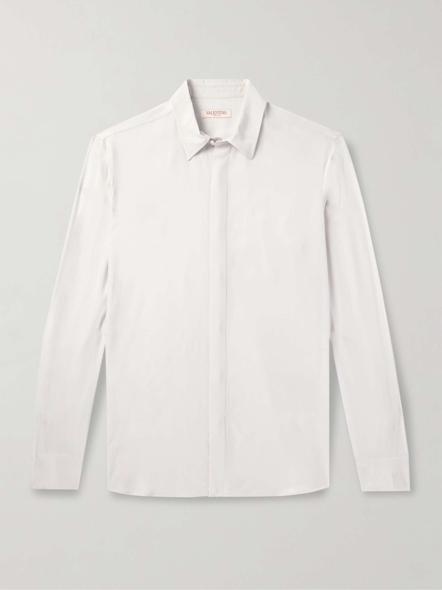 Valentino Garavani's shirt is tailored from silk crepe de chine and has a streamlined concealed placket. Take a cue from the house's AW24 runway and layer a rollneck underneath. Size & Fit - Fits true to size. Take your normal size - Designed for a slim fit - Lightweight, semi-sheer, non-stretchy fabric - Model is shown wearing an EU 39 (UK/US 15.5) - Model measures: chest 38"/ 96cm, height 6'1"/ 185cm Details & Care - White silk crepe de chine - Button fastenings - 100% silk - Dry clean