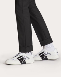 Valentino Garavani Calfskin VL7N Sneaker with bands. - Seven bands with rubber-effect VLTN logo. - Valentino Garavani heat-engraved logo on the back and the tongue. - Rubber sole. - Made in Italy.