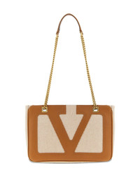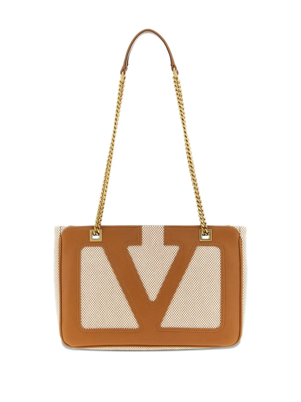 small Viva Superstar shoulder bag Highlights - Brown - Zip fastening - Gingham check canvas - Vlogo signature leather detail - Double sliding leather chain handle - Back zip pocket Made in Italy Composition Outer: Leather 100%, Canvas 100%, Cotton 100% SIZE & FIT Measurement DEPTH 1.18 in(3 cm) HEIGHT 7.08 in(18 cm) WIDTH 10.62 in(27 cm)
