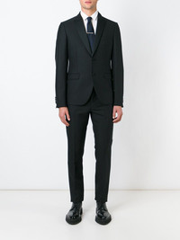 smoking suit Black wool-mohair blend smoking suit from Valentino including a jacket featuring notched lapels, draped details, a front button fastening, front flap pockets, long sleeves and button cuffs. The trousers feature a straight leg, belt loops, side pockets and two back buttoned welt pockets. Made in Italy Composition Lining: Polyester 100%, Acetate 67%, Lyocell 33% Outer: Wool 55%, Mohair 45% Washing instructions Read Manufacturer Guidelines