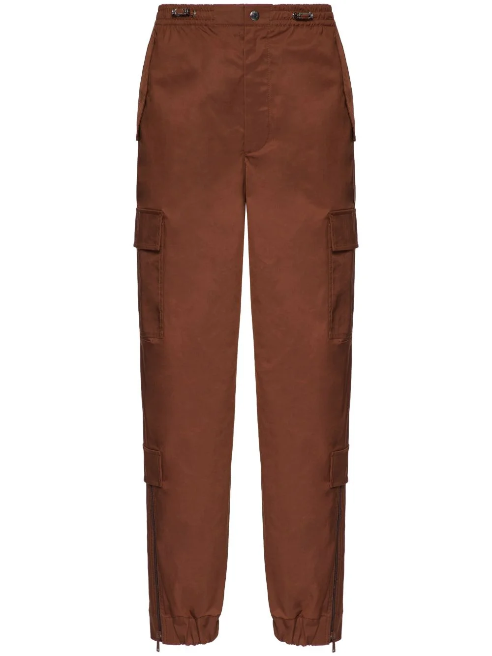 straight-leg cargo trousers Valentino Garavani reworks classic silhouettes with relaxed textiles, as seen with these straight-leg trousers. Presented in a warm rust brown hue, the cargo pockets add a contemporary feel to the pair. Highlights - Valentino ready to wear - Rust brown - Multiple cargo pockets - Mid-rise - Drawstring fastening waist - Straight leg - Elasticated ankles - The full look includes valentino garavani accessories. Made in Italy Composition Outer: Polyester 64%, Elastomultiester 36% Lining: Polyester 100% Washing instructions Read Manufacturer Guidelines