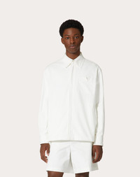 Valentino stretch cotton canvas jacket with rubberized V Detail - Regular fit - Lined - Rubberized V Detail on breast pocket - Concealed button closure - Two side welt pockets - One pocket on left breast as worn - Composition: 98% Cotton, 2% Elastane - Lining: 100% Cotton - Length: 73 cm / 28.7 in. from the back of the neck in an Italian size 46 - The model is 187 cm / 6'1" tall and wears an Italian size 46 Made in Italy The look of the model is completed by Valentino Garavani Rockstud Shoes. Product code: 4V0CJJ109UA_A03