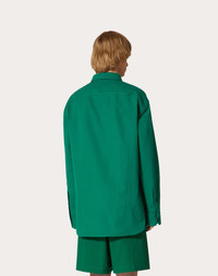 Valentino stretch cotton canvas shirt jacket with rubberized V Detail - Oversized fit - Rubberized V Detail on breast pocket Button closure - Two side welt pockets - One left breast pocket as worn - Composition: 98% Cotton, 2% Elastane - Length: 84 cm / 33.1 in. from the back of the neck in an Italian size 46 - The model is 187 cm / 6'1" tall and wears an Italian size 50 Made in Italy The look of the model is completed by Valentino Garavani Upvillage Shoes. Product code: 4V0CIO059UA_PVF Valentino stretch cotton canvas shirt jacket with rubberized V Detail - Oversized fit - Rubberized V Detail on breast pocket Button closure - Two side welt pockets - One left breast pocket as worn - Composition: 98% Cotton, 2% Elastane - Length: 84 cm / 33.1 in. from the back of the neck in an Italian size 46 - The model is 187 cm / 6'1" tall and wears an Italian size 50 Made in Italy The look of the model is completed by Valentino Garavani Upvillage Shoes. Product code: 4V0CIO059UA_PVF