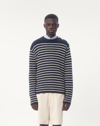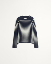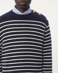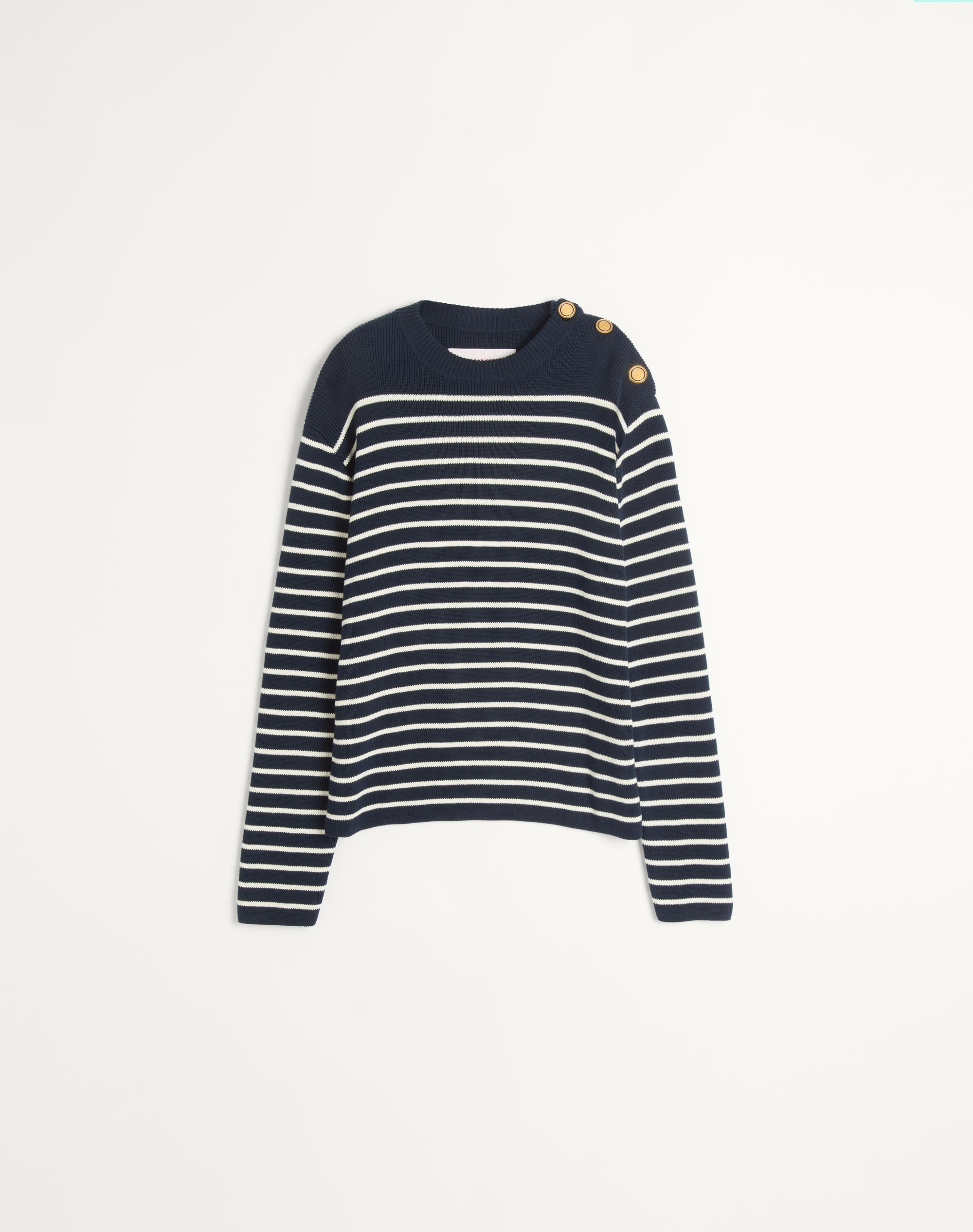 STRIPED COTTON CREWNECK SWEATER WITH BUTTONS ON THE SHOULDER