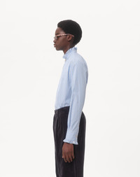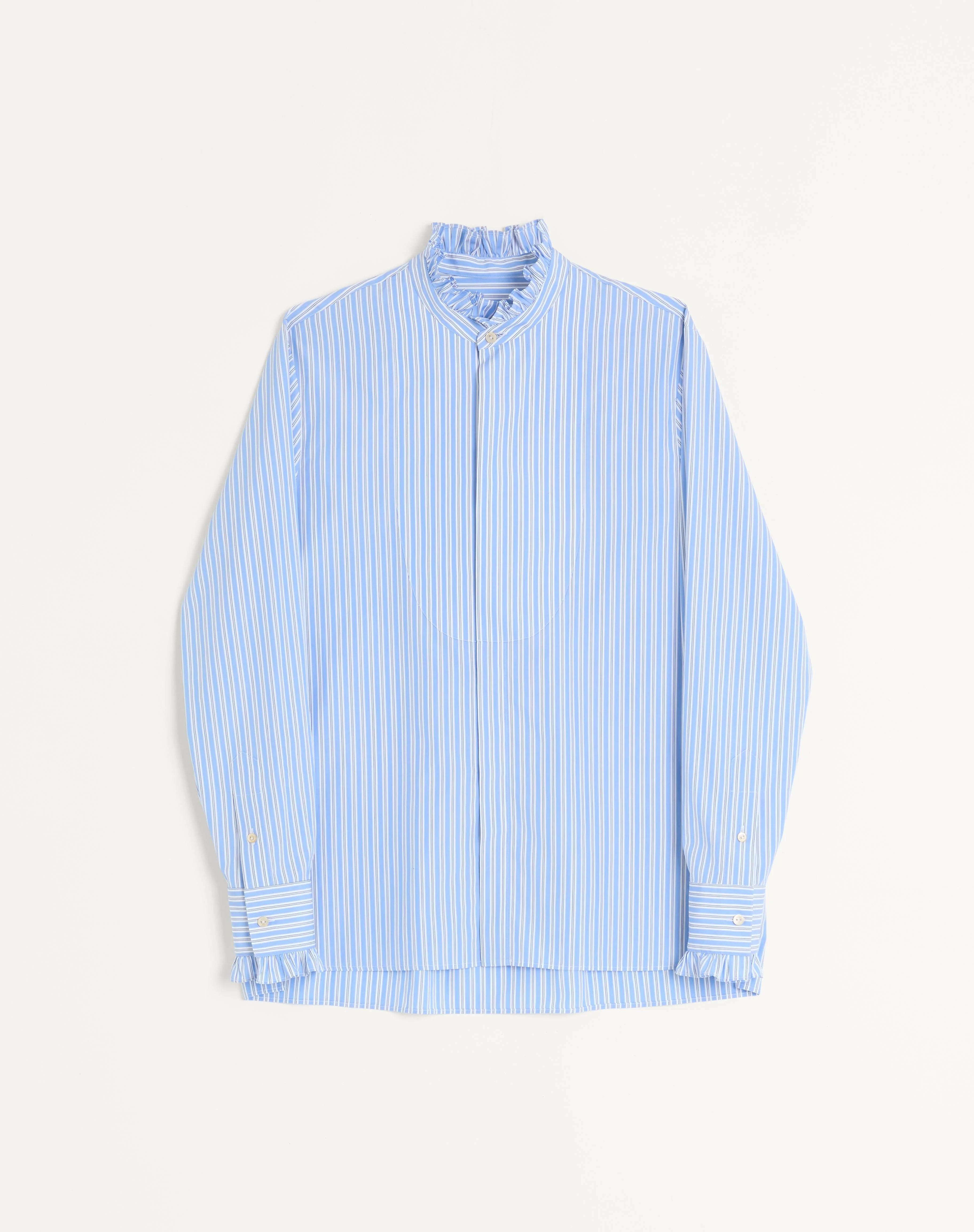 STRIPED COTTON SHIRT WITH PLASTRON AND RUFFLES
