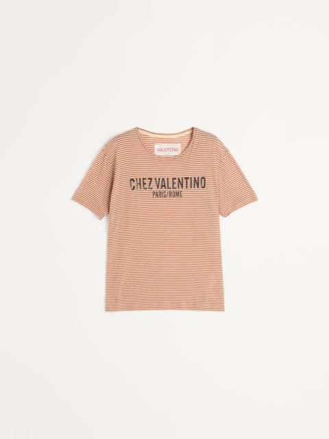 STRIPED COTTON T-SHIRT WITH CHEZ VALENTINO PRINT