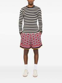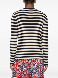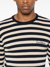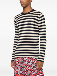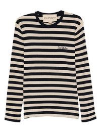 striped long-sleeve sweater Highlights - Beige and black - Horizontal stripes - Crew neck - Long sleeves - Embroidered logo Made in Italy Composition Polyester 100%, Virgin Wool 100% SIZE & FIT Model measurements Height 6 ft 1 in(1.85 m) Bust/Chest 38.58 in(98 cm) Hips 37 in(94 cm) Waist 30.31 in(77 cm) Washing instructions Dry Clean Only