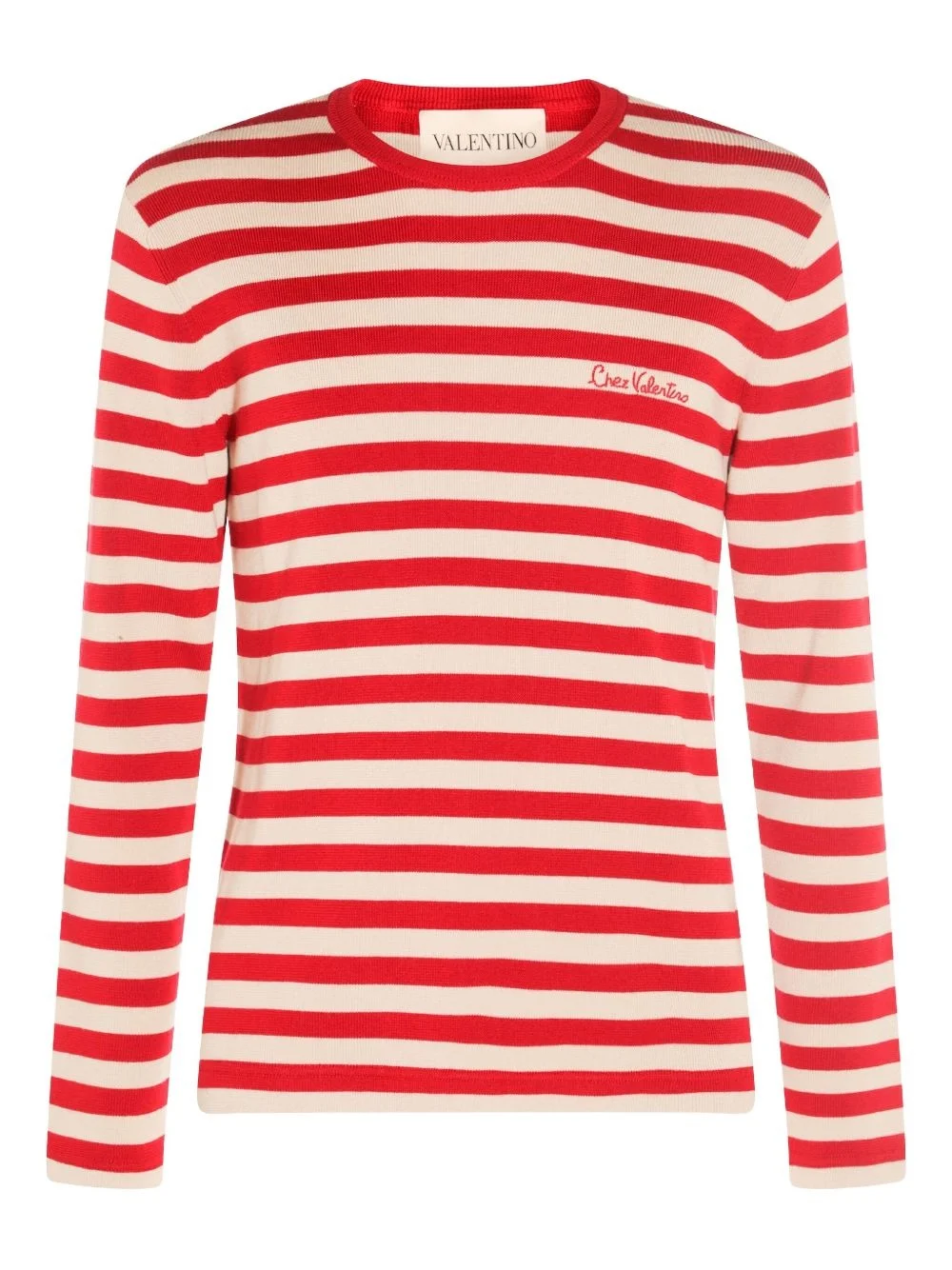 striped wool T-shirt Highlights - Red - Wool - Horizontal stripes - Ribbed knit - Crew neck - Long sleeves - Embroidered detail Made in Italy Composition Wool 100% Washing instructions Read Manufacturer Guidelines