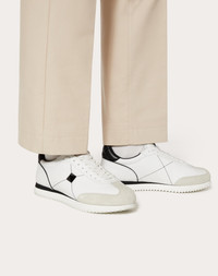 STUD AROUND LOW-TOP CALFSKIN AND NAPPA LEATHER SNEAKER
