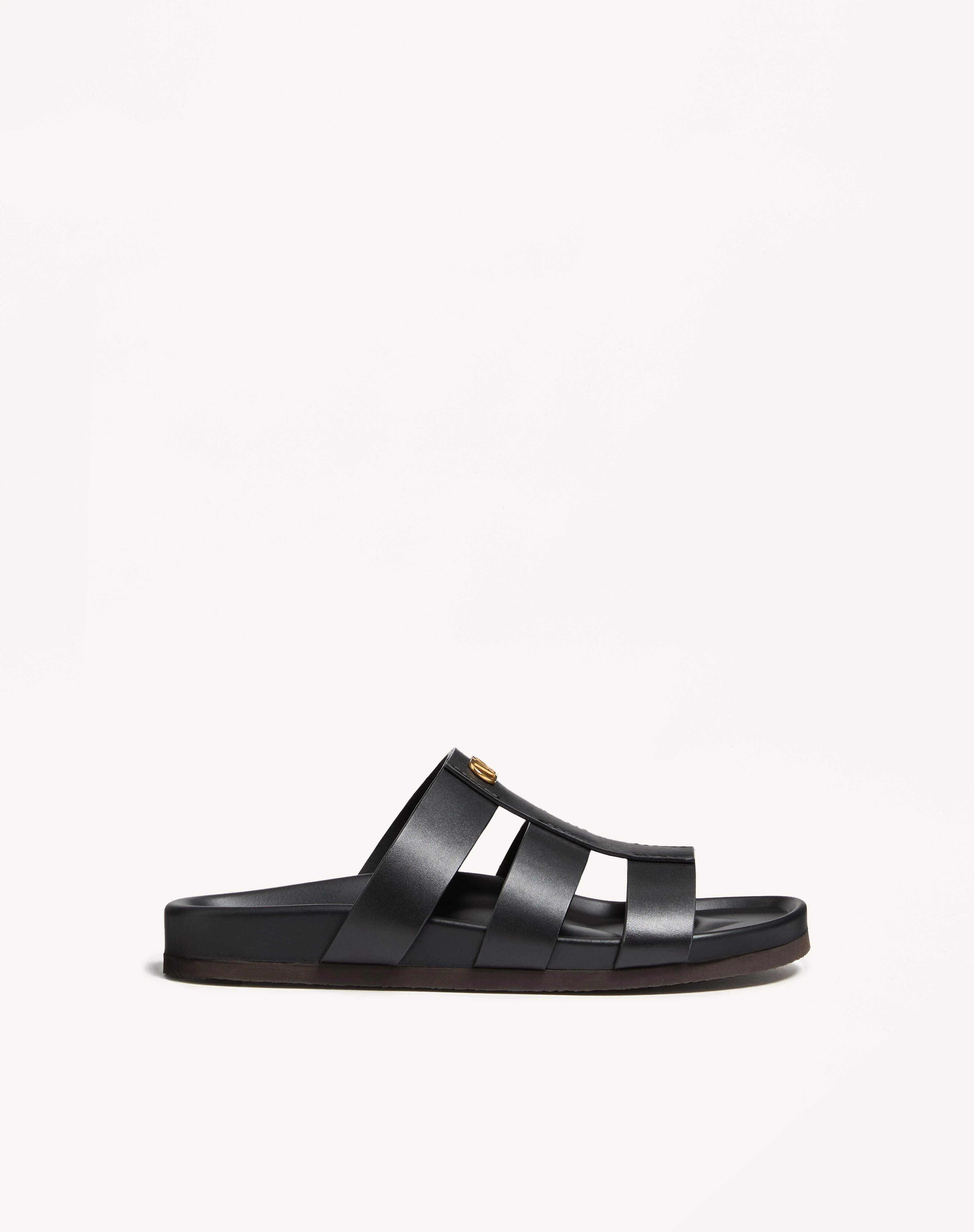 Valentino Garavani Studshield calfskin slide sandal - VLogo Signature detail in antique-effect brass finish - Rubber sole - Made in Italy Product code: 8Y2S0M95BEK_0NO