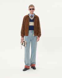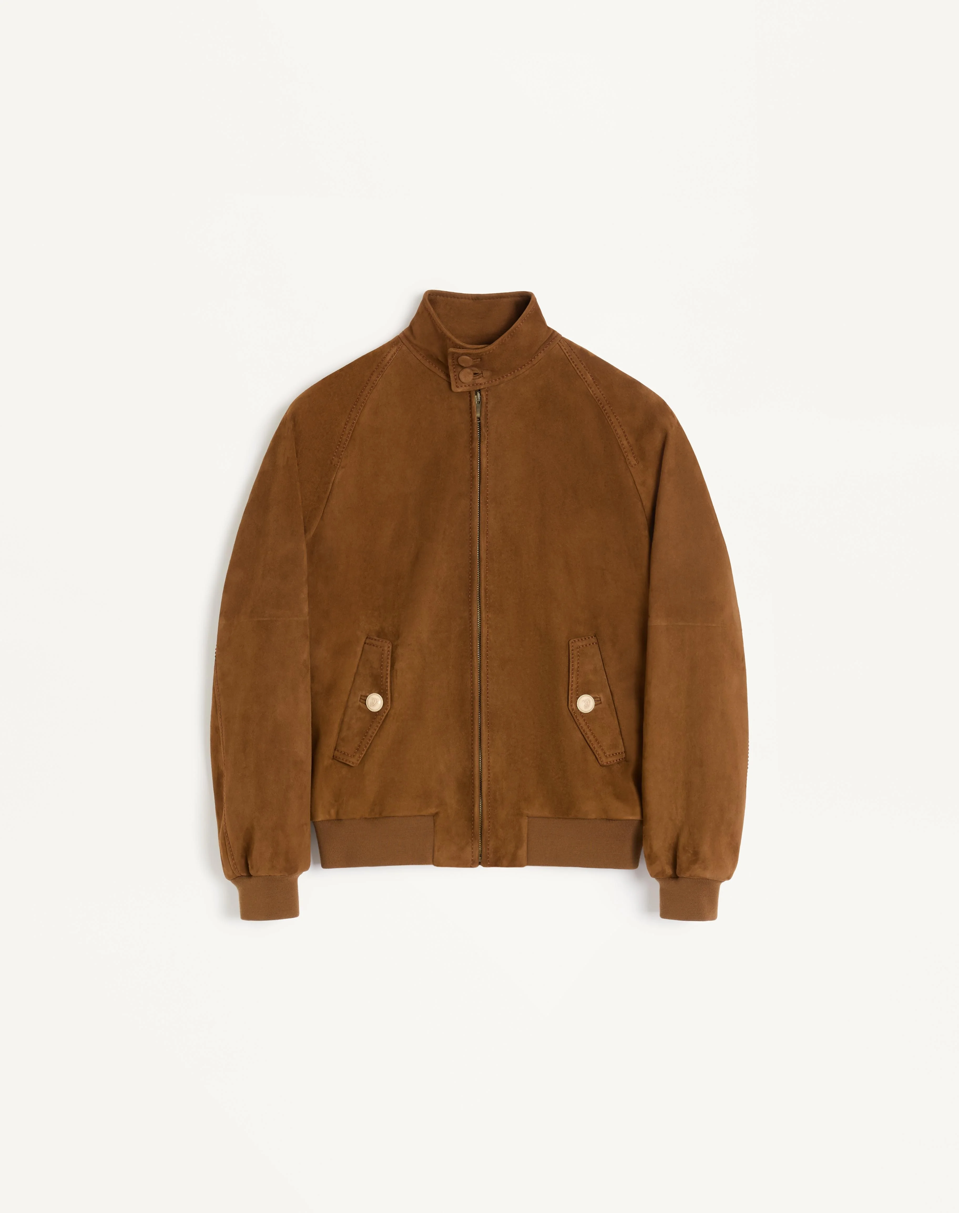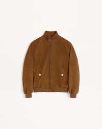 Valentino suede jacket - Regular fit - Zipper closure - Composition: 100% Lambskin - Length: 68 cm / 26.8 in. from the back of the neck in an Italian size 46 - The model is 187 cm / 6'1" tall and wears an Italian size 46 - Made in Italy The look of the model is completed by a Valentino Garavani Viva Superstar Bag and Valentino Garavani VLogo Signature Shoes. Product code: 7V3NAAM5B22_K29
