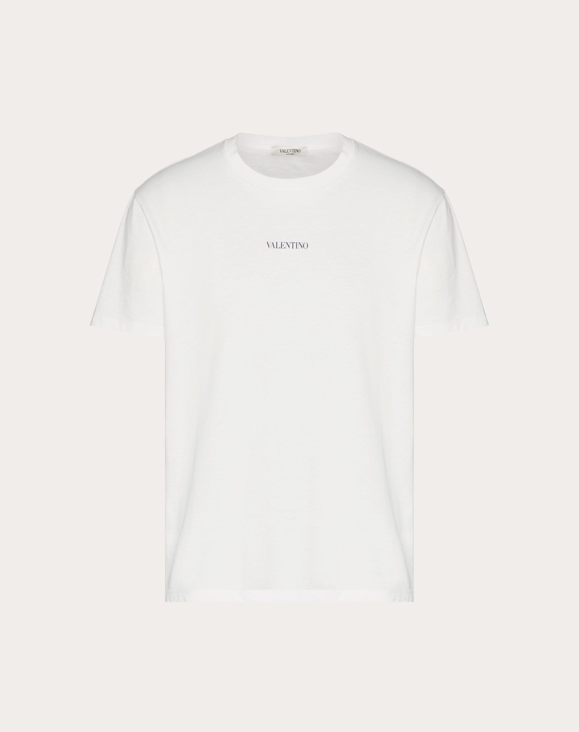 Cotton crewneck T-shirt with Valentino print. - Regular fit - Valentino print - Length: 68 cm / 26.8 in. from the back of the collar for Italian size M - Composition: 100% Cotton - Made in Italy - The model is 187 cm / 6’2” tall and wears an Italian size M Product Code VMG10V738_A01