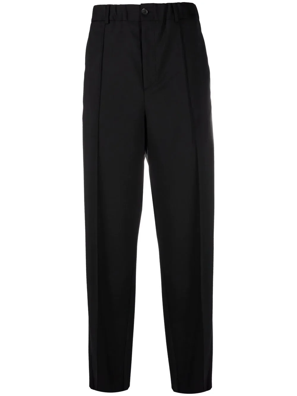 tailored straight-leg trousers Valentino Garavani puts a spin on a tailored classic with these black trousers. Spun from a wool-mohair blend, the pair is shaped with a relaxed wider leg. A contemporary choice for updating your smart-wear edit. Highlights - Valentino ready to wear - Black - Wool-mohair blend - Tailored design - Straight leg - Belt loops - Front button and zip fastening - Two side slit pockets - Rear welt pocket - Rear patch pocket Made in Italy Composition Outer: Wool 84%, Mohair 16% Lining: Cotton 100% SIZE & FIT Model measurements Height 6 ft 1 in(1.86 m) Bust/Chest 35.43 in(90 cm) Hips 35.43 in(90 cm) Waist 29.92 in(76 cm) FittingInformation This piece fits true to size. We recommend you get your regular size Designed for a slim fit at the waist and loose over the leg Made with a mid-weight non-stretch fabric Washing instructions Read Manufacturer Guidelines