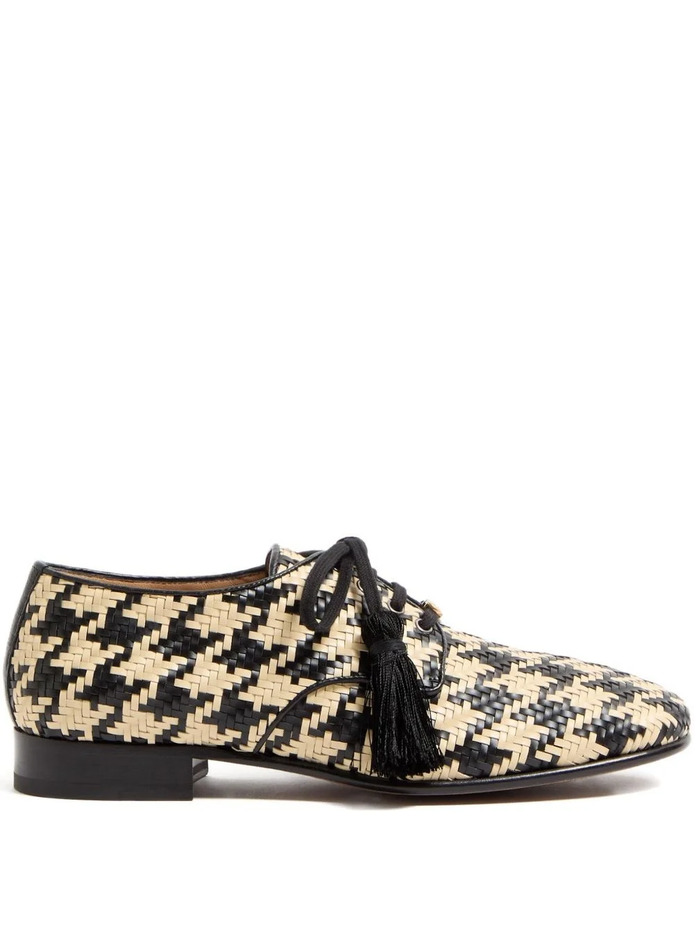 tassel-detail houndstooth loafers Highlights - Black and cream - Houndstooth pattern - Tassel detailing - Lace-up front - Low stacked heel Made in Italy Composition Outer: Calf Leather 100% Sole: Calf Leather 100% Lining: Goat Skin 100%