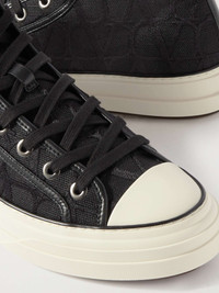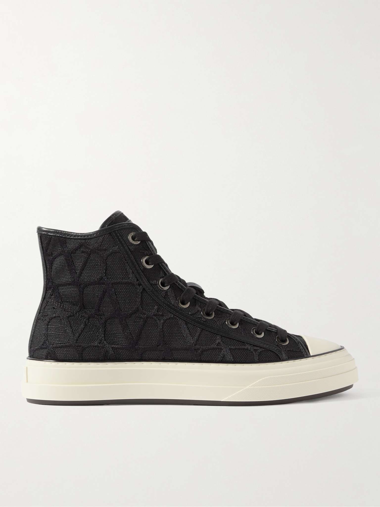 Valentino Garavani's 'Toile' sneakers may look classic at first, but take a closer look and you'll see they're embroidered throughout with the brand's 'VLOGO'. They're made from lightweight canvas in a high-top profile and have comfortable stacked soles. Team them with just about any casual outfit. Size & Fit - Fits true to size. Take your normal size - European sizing Details & Care - Black canvas - Lace-up