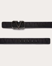 Valentino Garavani belt in Toile Iconographe technical fabric with leather details. - VLogo Signature ruthenium-finish buckle - Exterior in Toile Iconographe technical fabric - Calfskin interior - Embroidered holes - Dimensions: H40 mm / 1.6 in. - Made in Italy Product code: 5Y2T0SB3BFR_0NO Valentino Garavani belt in Toile Iconographe technical fabric with leather details. - VLogo Signature ruthenium-finish buckle - Exterior in Toile Iconographe technical fabric - Calfskin interior - Embroidered holes - Dimensions: H40 mm / 1.6 in. - Made in Italy Product code: 5Y2T0SB3BFR_0NO