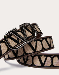 Valentino Garavani Toile Iconographe belt with leather detailing. - VLogo Signature ruthenium-finish buckle - Toile Iconographe exterior - Calfskin interior - Embroidered holes - Dimensions: H40 mm / 1.5 in. - Made in Italy Product code: 5Y2T0SB3BQB_6ZN